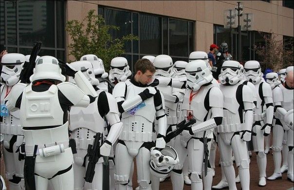My love of stormtroopers hit in May 1997, when my Dad took me to see A New Hope in Montpelier. As I wrote in the introduction to Cosplay: A History, I distinctly remember riding home, thinking about how cool the armor looked, and how much I'd love to figure out how to make one. I spent a lot of time in shop class thinking about how to construct such a costume, concocted elaborate plans to talk to a local metal sculptor to try teach me to do it, and scoured the web for directions. I never did end up making my own: I realized that the helmet was too complicated for sheet metal, and I never really wanted to use cardboard because it wouldn't look right.