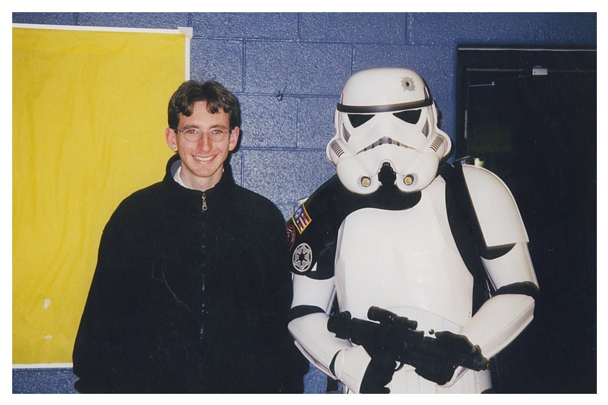The opportunity presented itself in the spring of 2003: after pestering my music teacher, Mr. Rivers, for six years to play Star Wars, I'd succeeded: we'd play a suite of music for my last-ever concert. I'd heard about the 501st Legion by that point: pictures of members in those early days cropped up in Star Wars Insider, and I asked if we could see if we could get some of those members up for the concert that May. Mr. Rivers agreed (I'm pretty sure this was just to get me out of his office), we reached out to the local garrison, and we ended up getting a trooper, Scott Allen, to drive all the way up from Rhode Island to suit up.