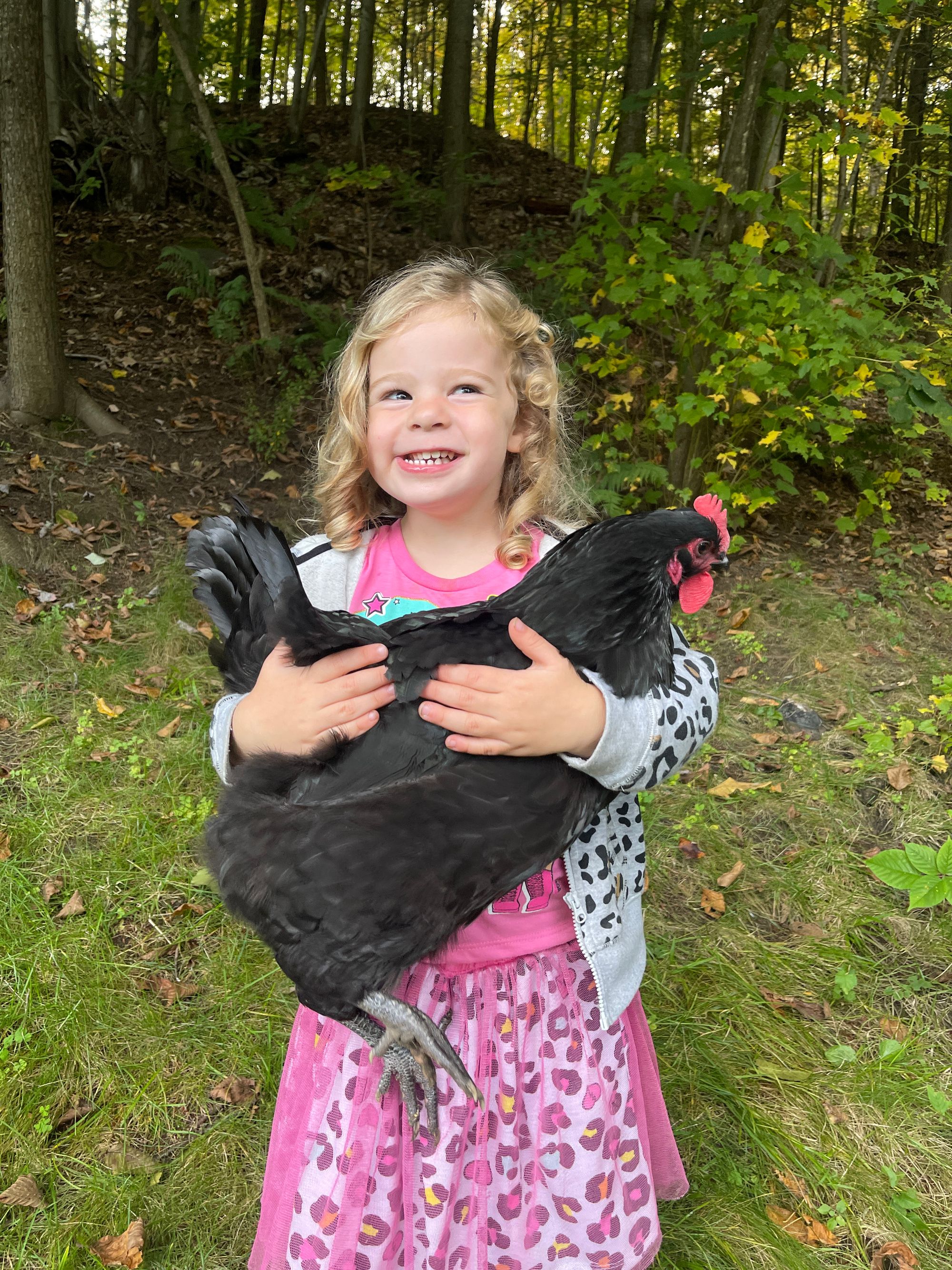 That's hard: from day one, Licorice has been a favorite of the entire family, especially Iris, who delighted in picking her up and carrying her around, putting her on the baby swing, or pulling her in a sled.