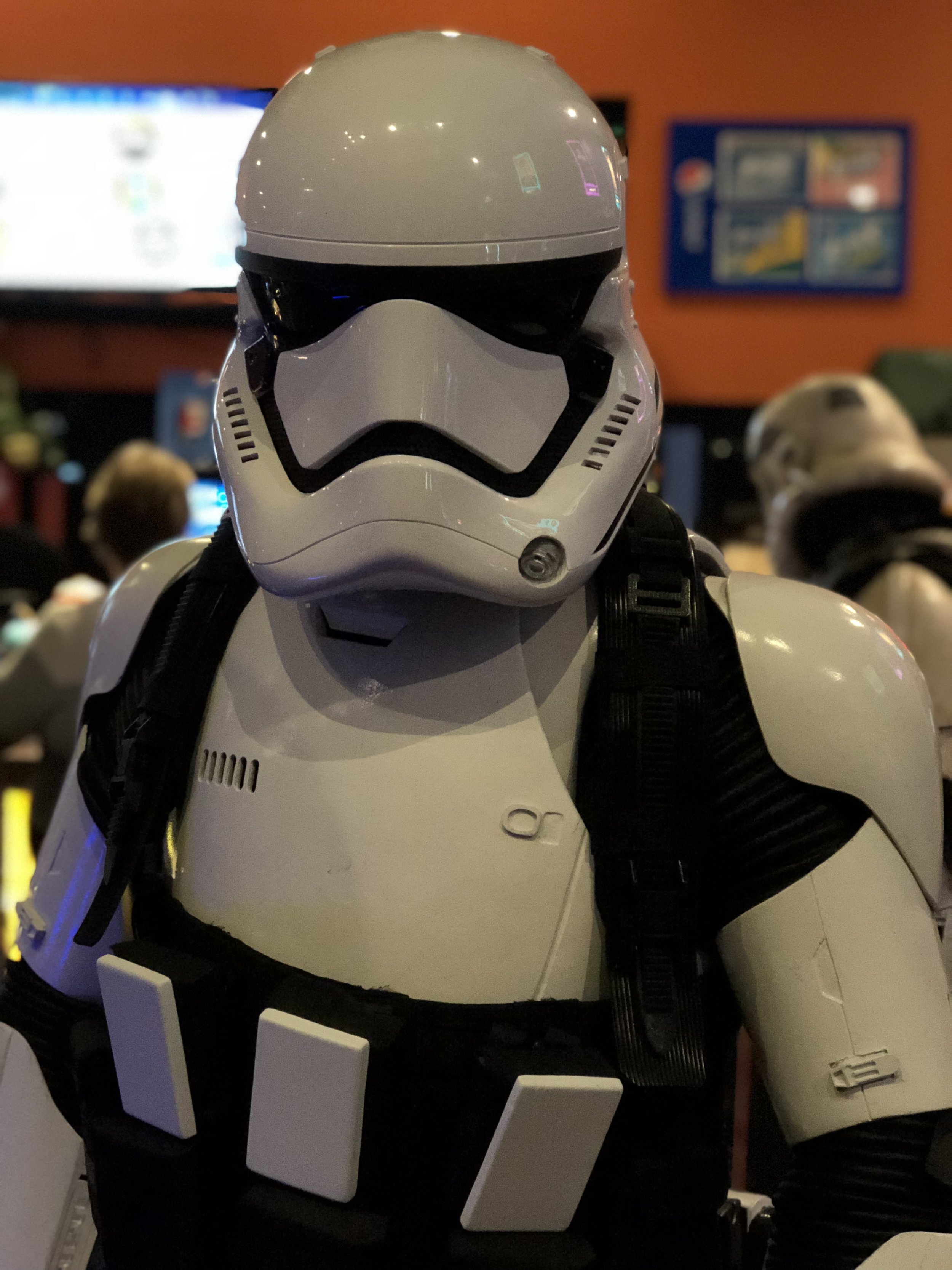 This costume is actually done, wearable, and 501st approved, but there’s some additional things that I’m working on to flesh it out. I’m getting a friend to print me up an F-11D blaster for my First Order trooper, and I need to get a pistol for the thigh as well. I’ve got a couple of parts for a set of quadnocs that they carry around to use for troops where I can’t carry a blaster, and need to get the rest printed up. I also need to get the backpack painted — there’s some small details that I need to finish up on it, before I figure out how to get it attached to the costume itself. I saw someone at Celebration who had attached it to their equipment vest, and I might try and do something similar, rather than bolt it to the back of the suit, something I’ve been wanting to avoid.
