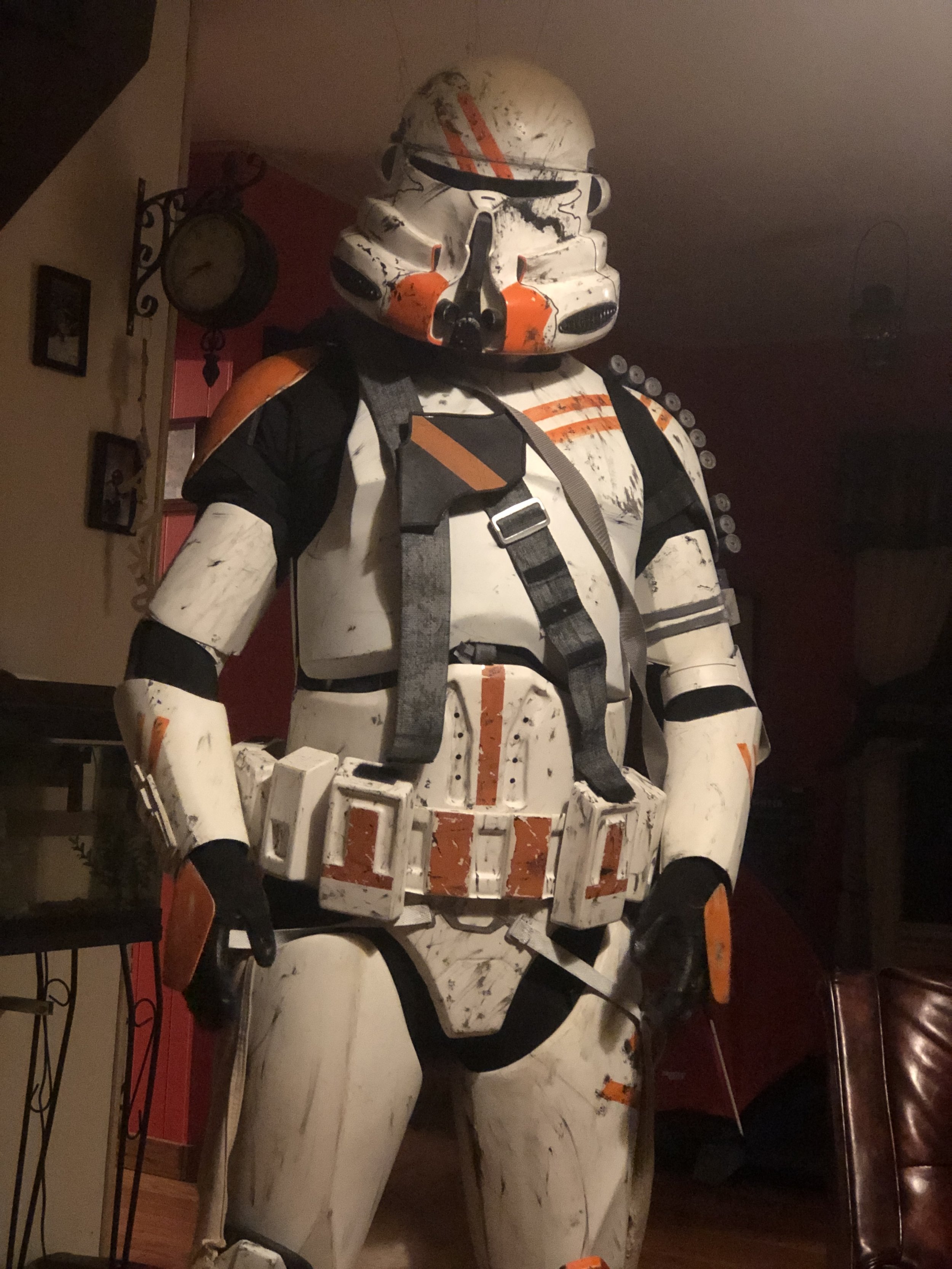 A couple of years ago, I picked up the armor for this trooper, in trade for another clone that I’d made for Megan that she wasn’t wearing. This is the costume that I’ve got that’s closest to being completed: it really only needs some minor adjustments to get it to sit right. I tried it on recently, and really just need a spare set of hands to help me figure a couple of things out.
