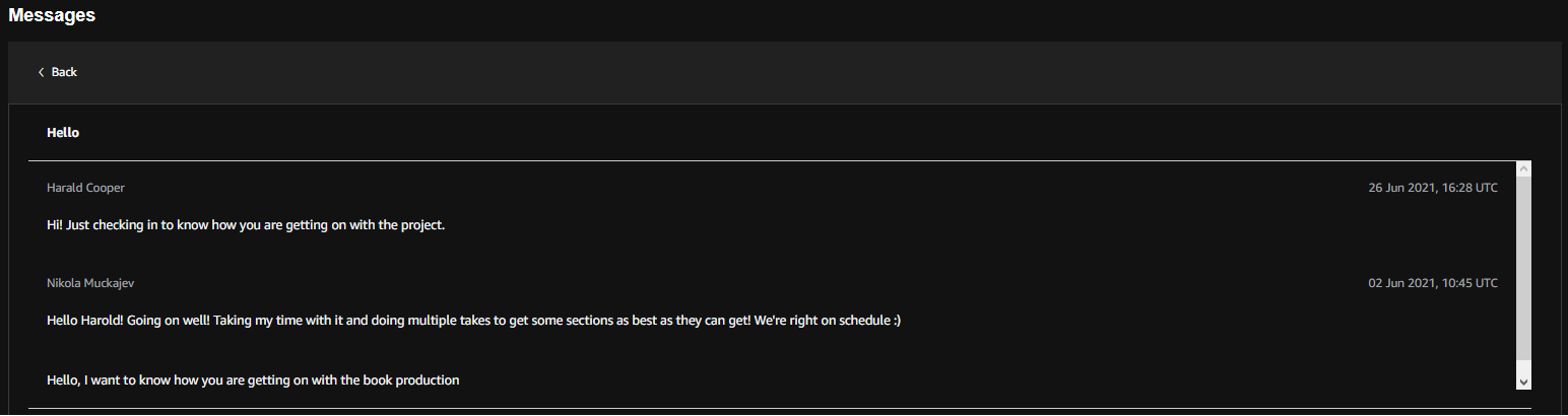 Muckajev explained that he has a mix of returning authors who bring him back for new installments of their books, as well as new gigs, which he finds by searching through projects up for audition on the platform. Authors or Audio Rights Holders post up their project and narrators on the platform provide samples for them to review. If they're selected, they negotiate a rate and delivery timeline, and put the project into production.