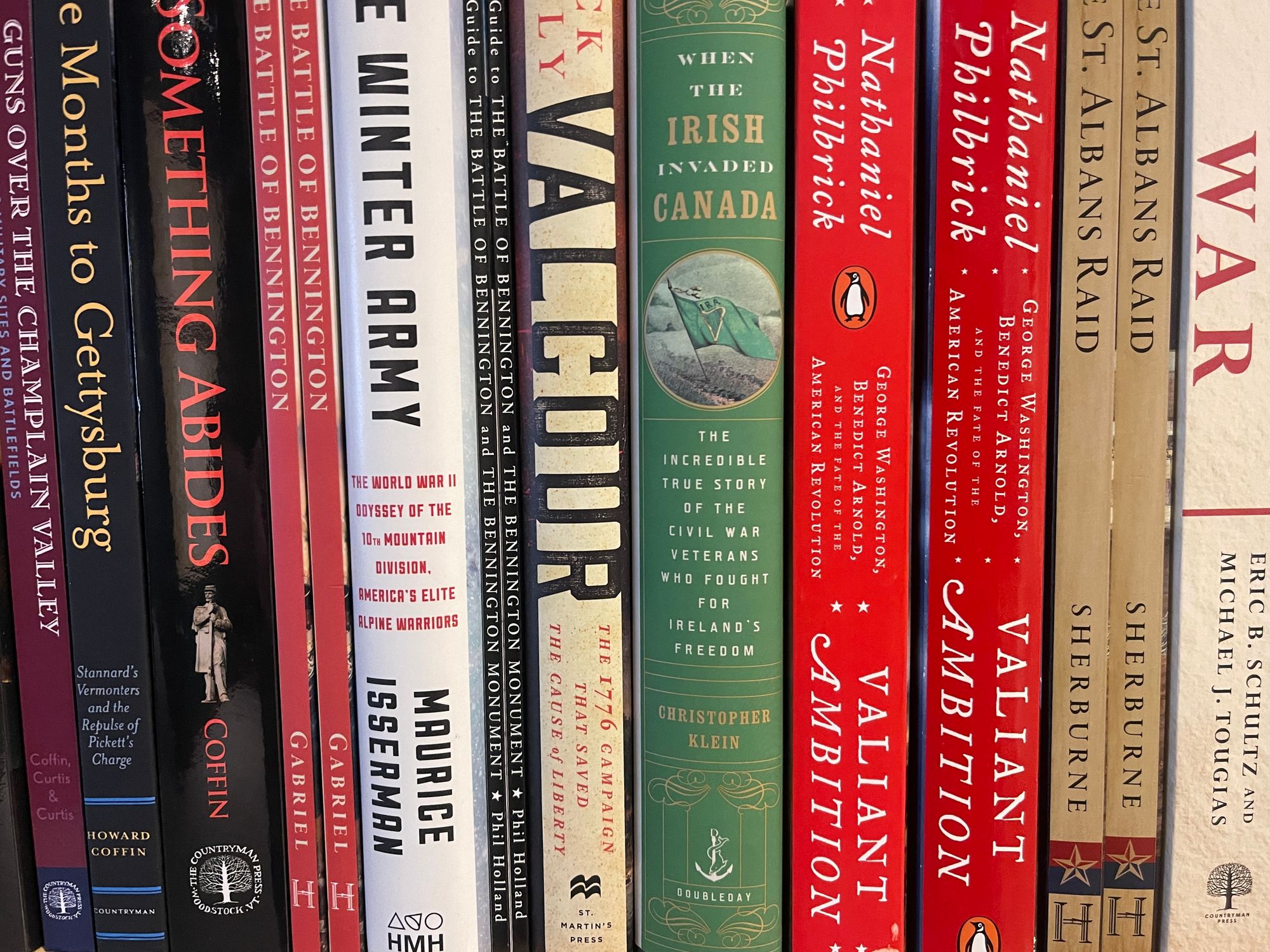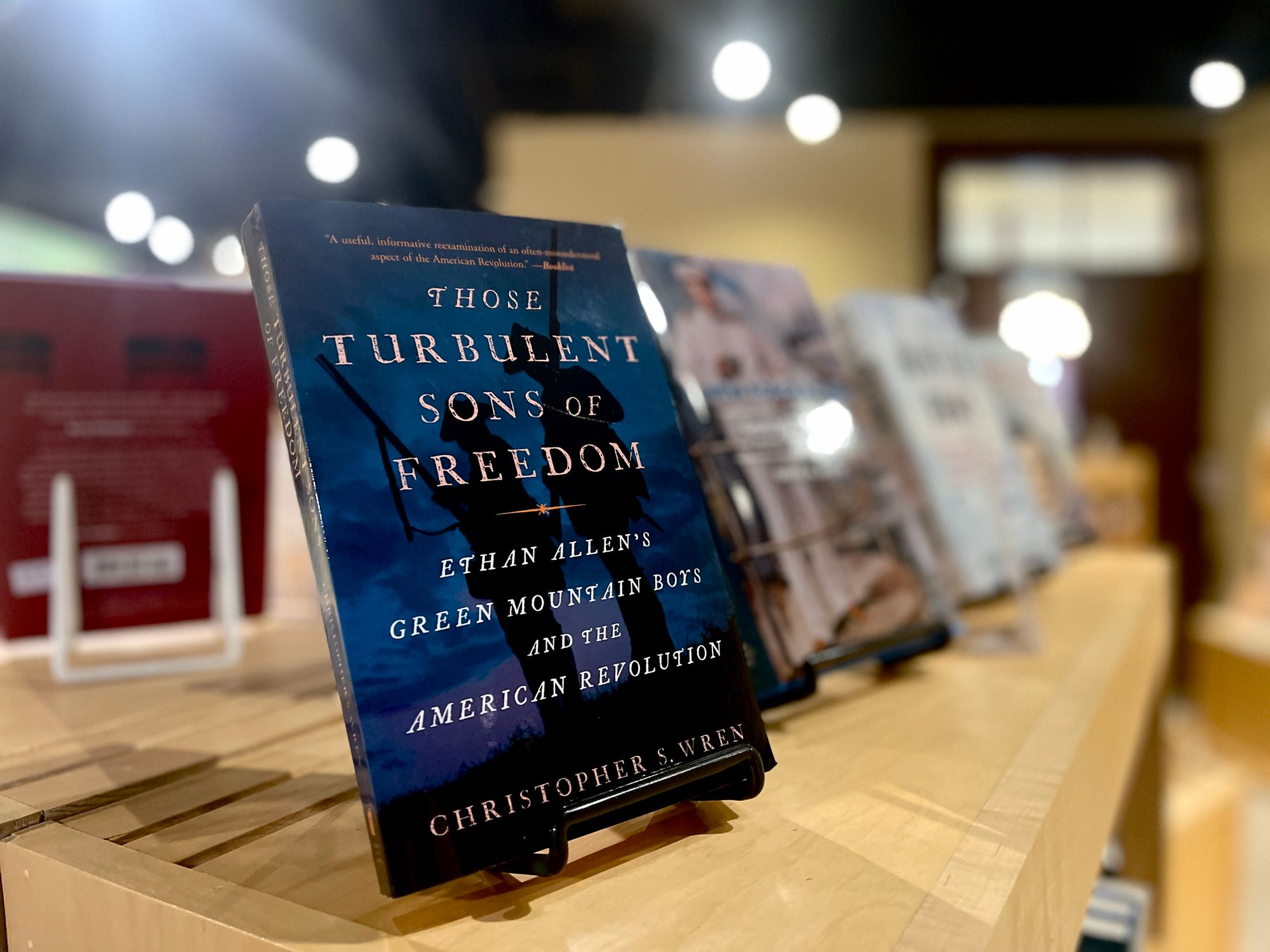 I had one clue when I arrived in the office in 2022: a review copy of a book by Jack Kelly, Valcour: The 1776 Campaign That Saved the Cause of Liberty. I wasn't sure why we didn't have it on our bookshelves, but I began reading it and realized that it was something that we probably should carry. That led to another discovery: Those Turbulent Sons of Freedom: Ethan Allen's Green Mountain Boys and the American Revolution by Christopher S. Wren, a recent book about Ethan Allen and the state's early days. I read through that and really loved it, and set about setting up accounts to begin acquiring them. I reorganized the store into categories that made sense: military history, local towns, state-wide histories, etc.