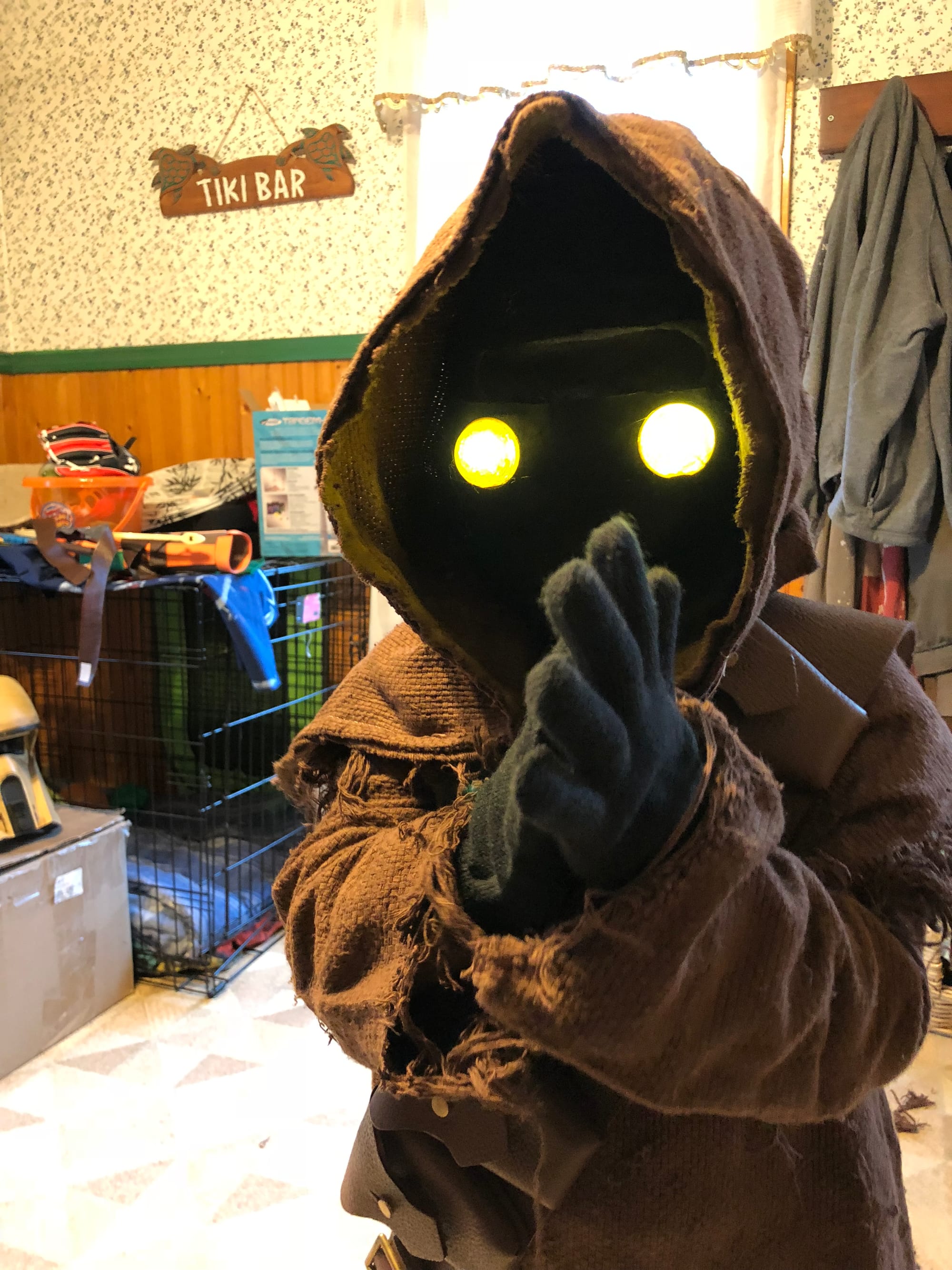 My son dressed as a Ringwraith, Hylian Link, and a Jawa, all made with fabrics purchased at JOANN Fabrics. Images: Andrew Liptak