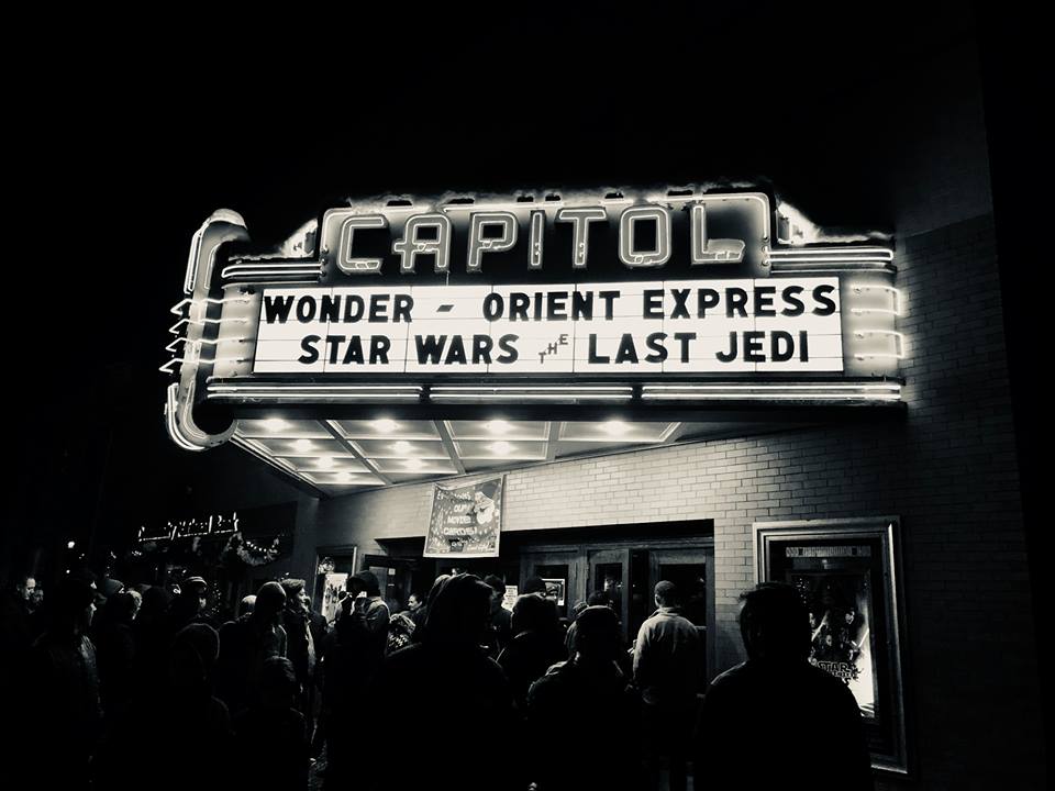Not everything I took went to The Verge. I snapped this picture in December of the marquee of Montpelier's Capitol Theater when we went to go see The Last Jedi. It's got a filter on it, Silvertone, and the balance between light and shadows came out really, really well.