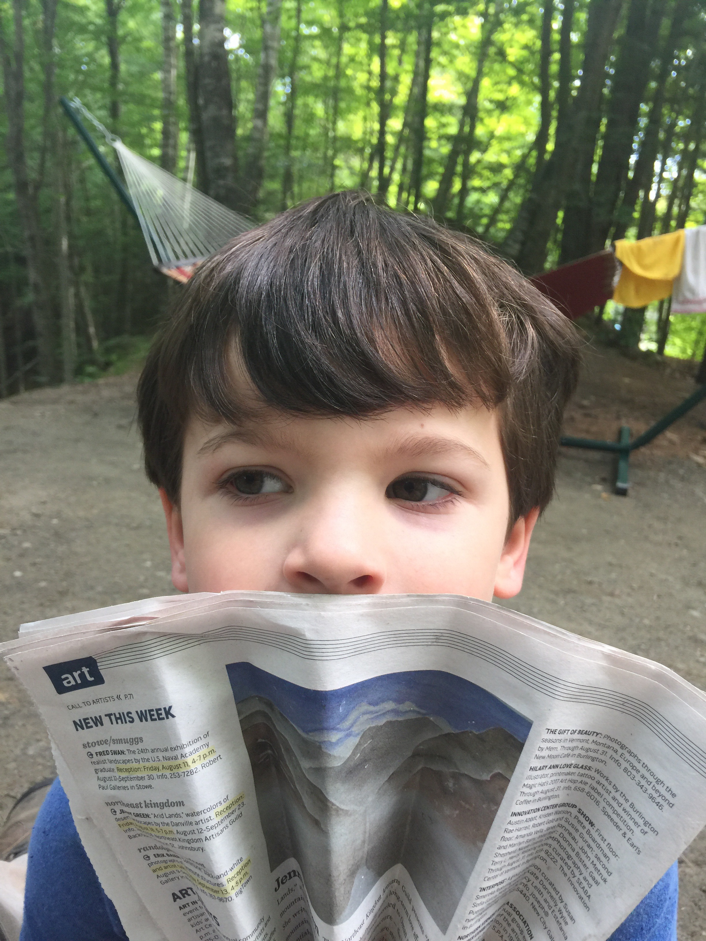 A goofy one of Bram, while we were camping with my brother and sister. I can't remember what I said to him, but he made a funny face.