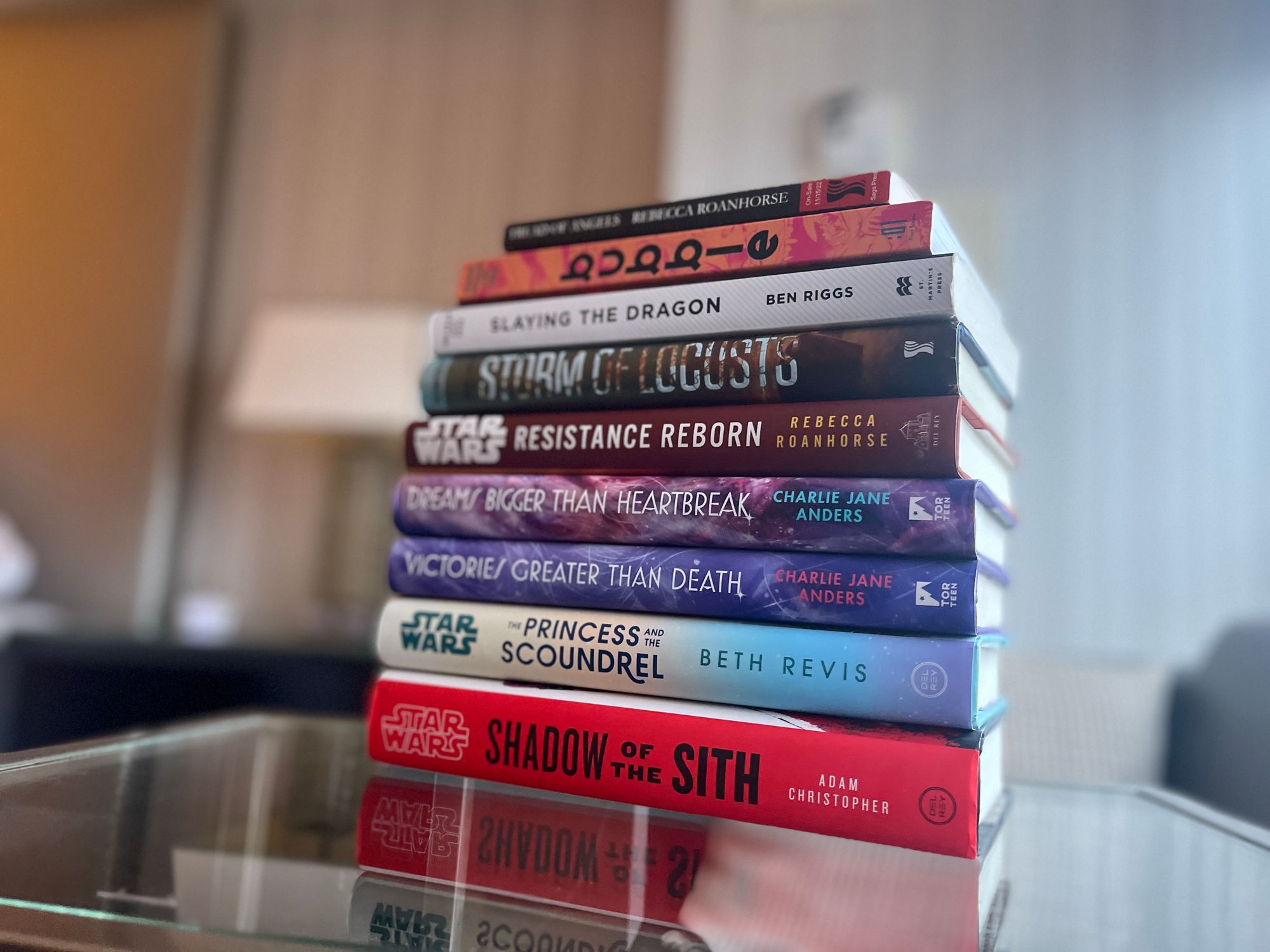 Because I'm... me, I hauled along a small library with me: books to read, and books that I'm hoping to get signed while I'm here.