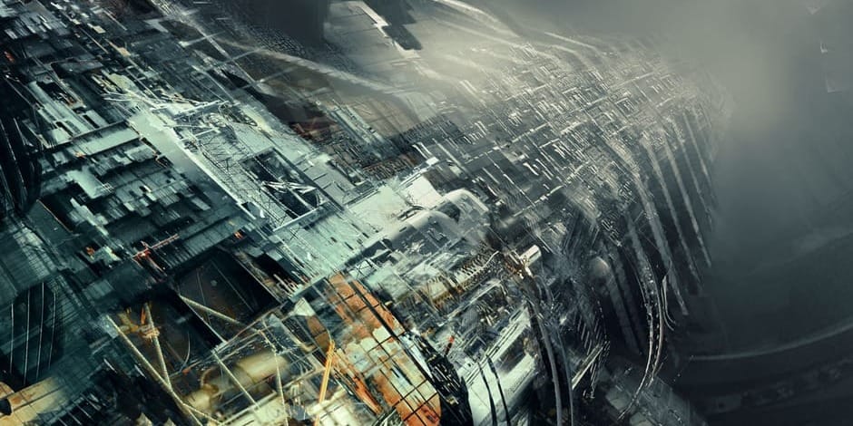 For Leviathan Wakes, Panepinto provided Dociu with a basic description of what she and the art department wanted depicted. He set to work, drawing from his files of reference photos and artwork, and quickly put the cover in together in photoshop.