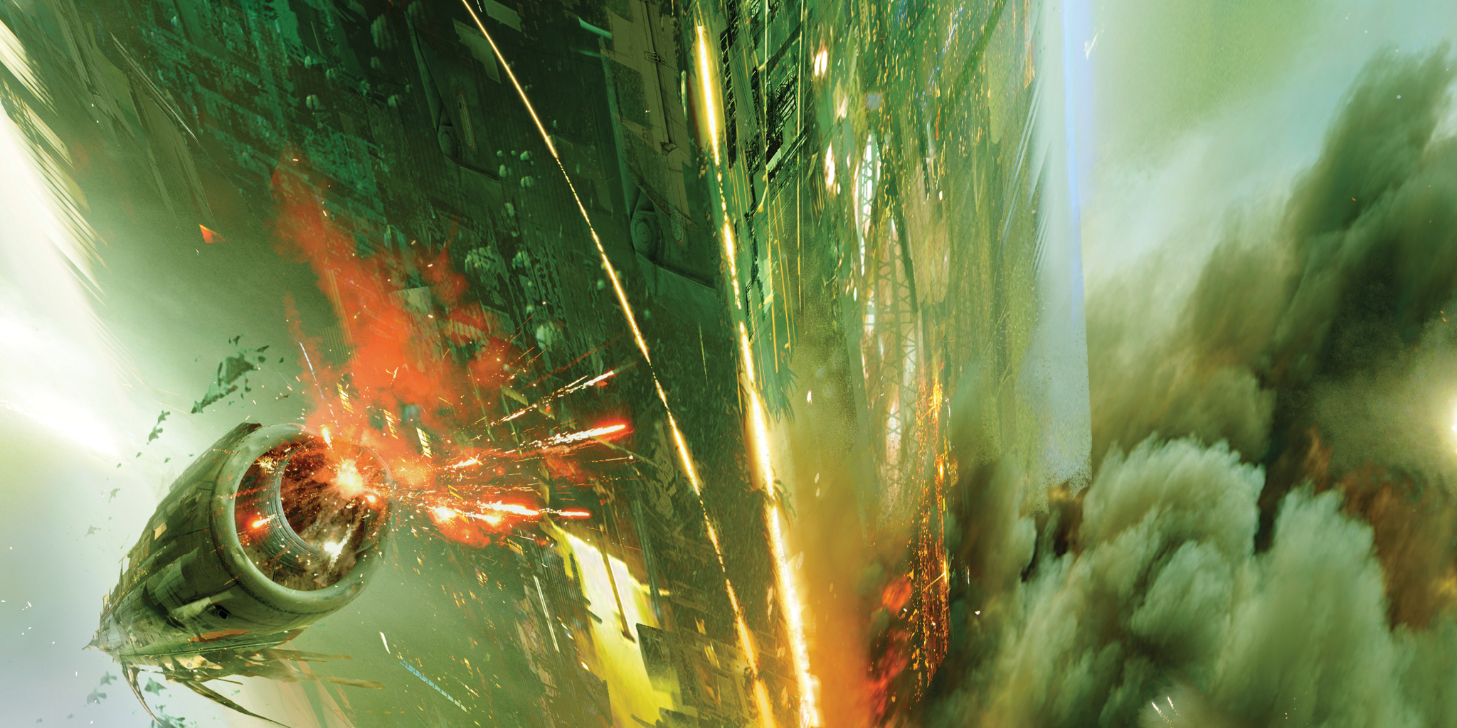 In 2014, Orbit released Cibola Burn and a standalone novella, The Churn. For the first time, the action leaves the solar system, as Holden and crew are dispatched to one of the many new colonial worlds now open to humanity. Franck and Abraham likened the plot of the fourth novel to that of a Western, where, “the railroad [is] coming through the town, and what people who are living hand-to-mouth do to protect themselves when giant corporate interests are just making a land grab.” Colonial OPA and corporate interests clash as new discoveries on the planet threaten an entire settlement, and the balance of power back at home. Franck noted that the novel was also a good opportunity to play with some realistic expectations of settling an alien world.