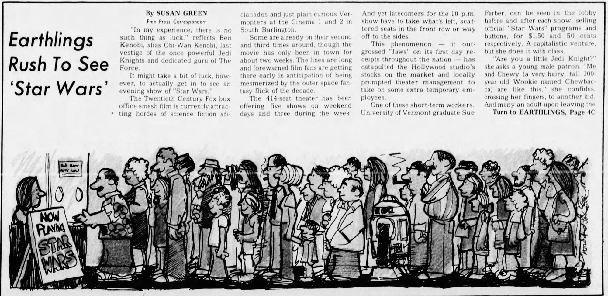 Star Wars arrived in Vermont in mid-July, and I found an outstanding article from the Burlington Free Press (published July 27th), in which correspondent Susan Green provides a glimpse into what the reaction was like: