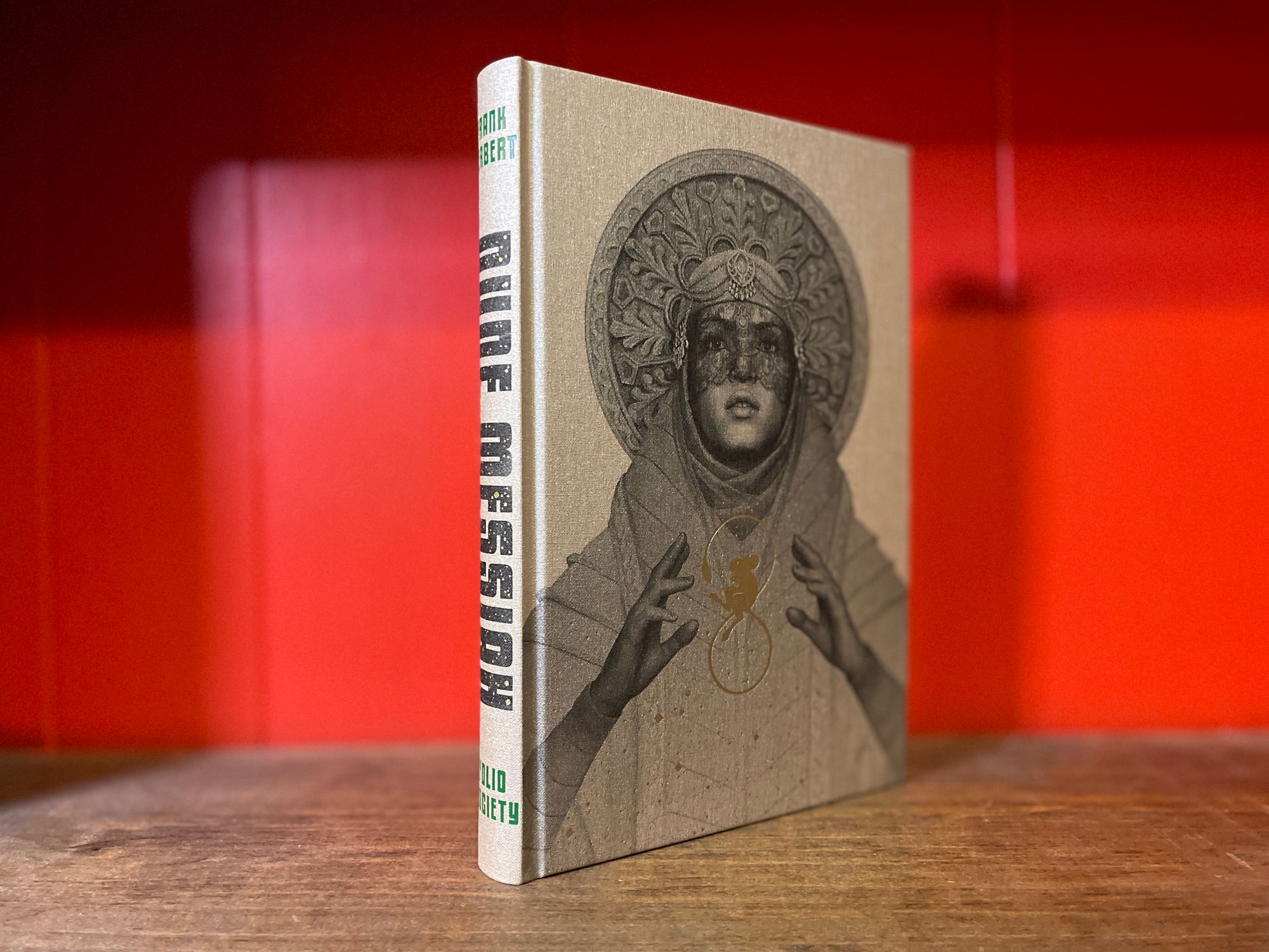 However, we hadn’t seen it follow up with the other books in Herbert’s series — until this fall with the release of Dune: Messiah, the second book in the series. This book fits nicely alongside that first volume: it keeps the same grey cover, sand-patterned slipcase and stylings, and features illustrations by Hilary Clarcq. It looks just as great as its predecessor: a beautiful edition that I'm looking forward to digging into.