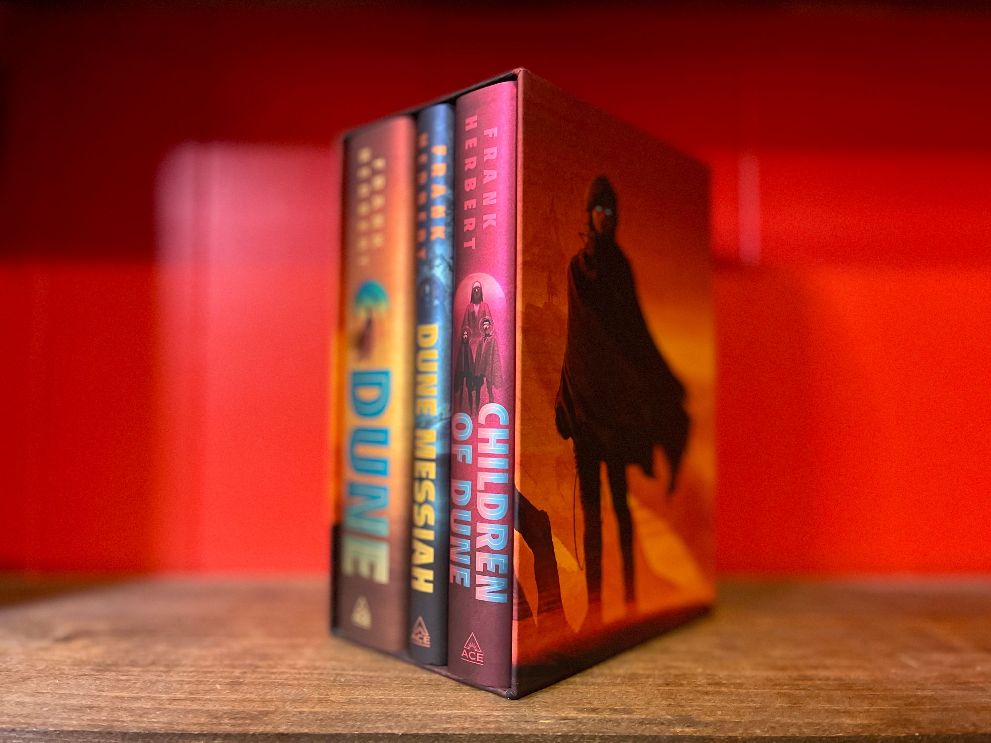 If you’re looking for some other editions of Frank Herbert’s Dune novels that are a bit of a step up over the regular trade editions, Ace has followed up its Deluxe edition of Dune from 2019 with deluxe editions of its sequels, Dune: Messiah and Children of Dune, and released the trio in a nice boxed set. These three editions all feature new covers from Matt Griffith, as well as introductions by Herbert’s son, Brian. It’s a nice package for Dune fans or for newcomers to the series.