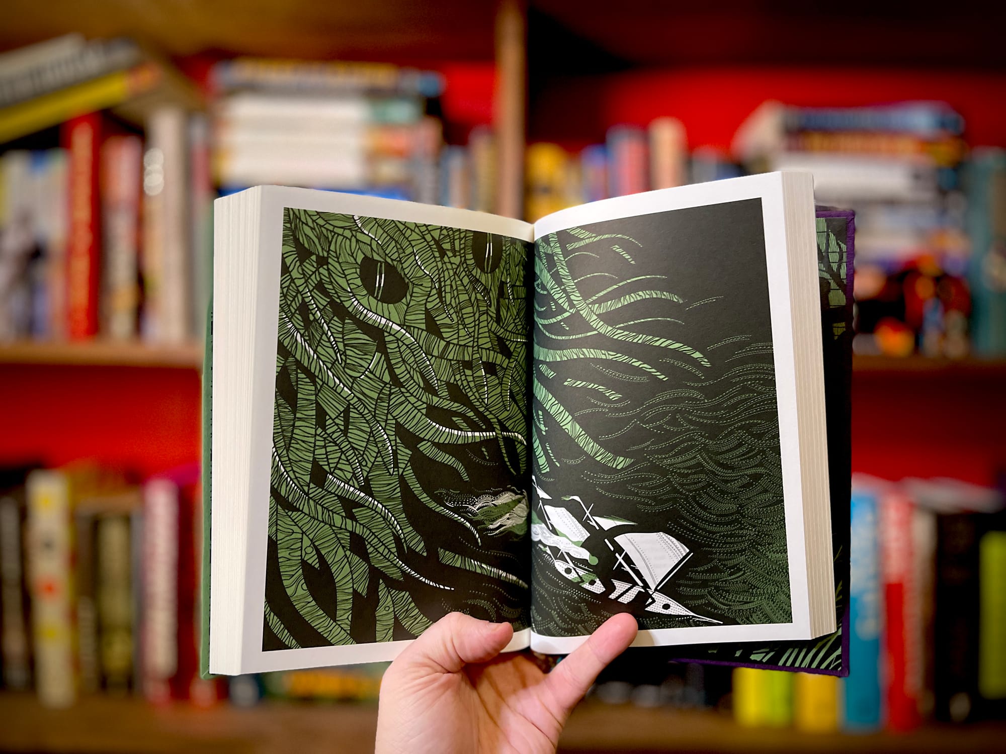 Like most of the Folio Society's offerings, this is a handsome volume. With its green and purple color scheme, this book reminds me quite a bit of the company's 2017 release, The Call of Cthulhu & Other Weird Stories, a selection of stories by H.P. Lovecraft, which oozes with an uncanny and off-kilter feel when you hold it. It features a handful of original illustrations from artist Harry Campbell, who uses a stark green-and-black woodcut motif for each of the images. It'll make for an excellent book to break out later this fall around Halloween.